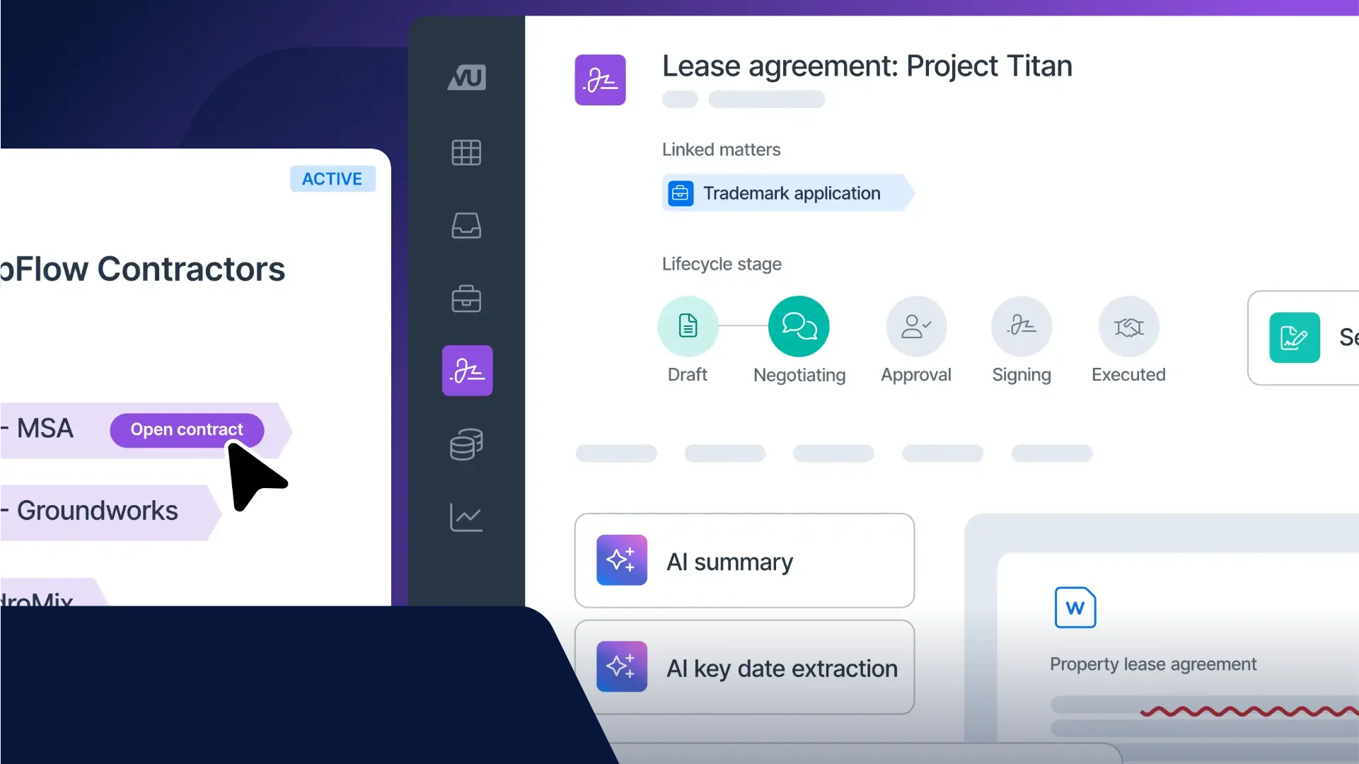 Not only do we have AI in our CLM, we have AI in other parts of the LawVu legal workspace! For more information on LawVu AI, click here to learn more about the various AI integrations we have available.