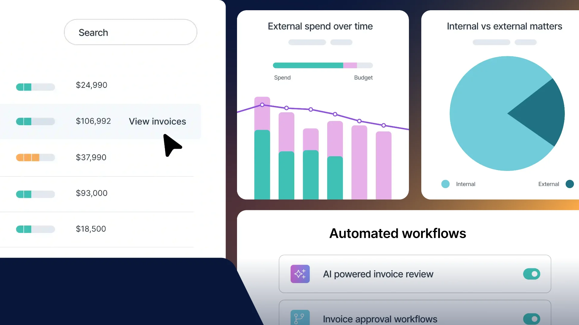 For even more efficiency, you can take advantage of LawVu’s AI-powered invoice extraction which allows you to create faster, more efficient workflows to manage spend all while gaining reliable data that provides visibility into all of legal’s work. Learn more about LawVu’s AI capabilities here.